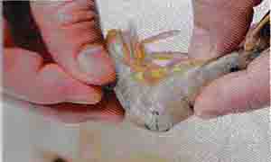4.片成蝦肉片 剝?nèi)ノr頭及蝦身的殼,留下蝦尾,用刀從蝦腹切開至背部但不切 斷,片開后內(nèi)側(cè)蝦肉用刀背將蝦筋略砍一下,可避免油炸或蒸煮時蝦身卷曲。 |